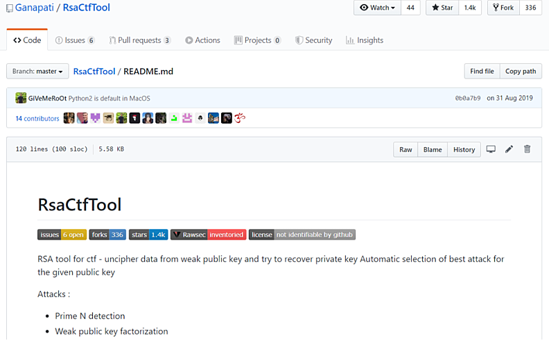 github에 보면 RsaCtfTool 이라는 좋은 도구가있다. 최근까지도 계속 업데이트 하고 있는듯 하다.