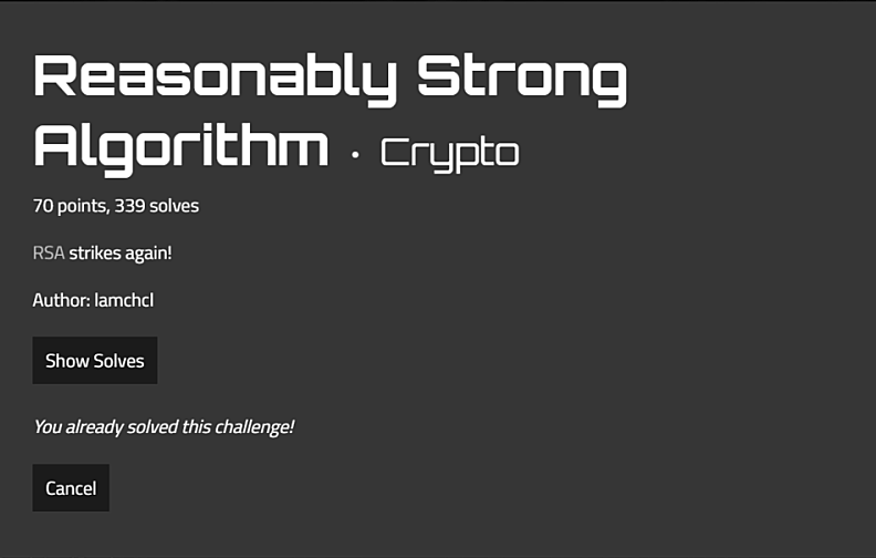 문제 이름이 Reasonably Strong Algorithm 인데 맨 앞글자만 따면 R S A 가 된다.