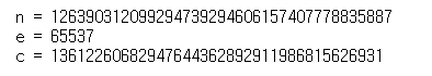 c는 cipher text의 약자로 암호문이다. 아마 위에있는 공개키로 어떤 문자열을 암호화한 값일 것이다.