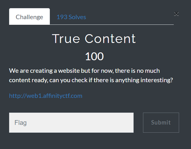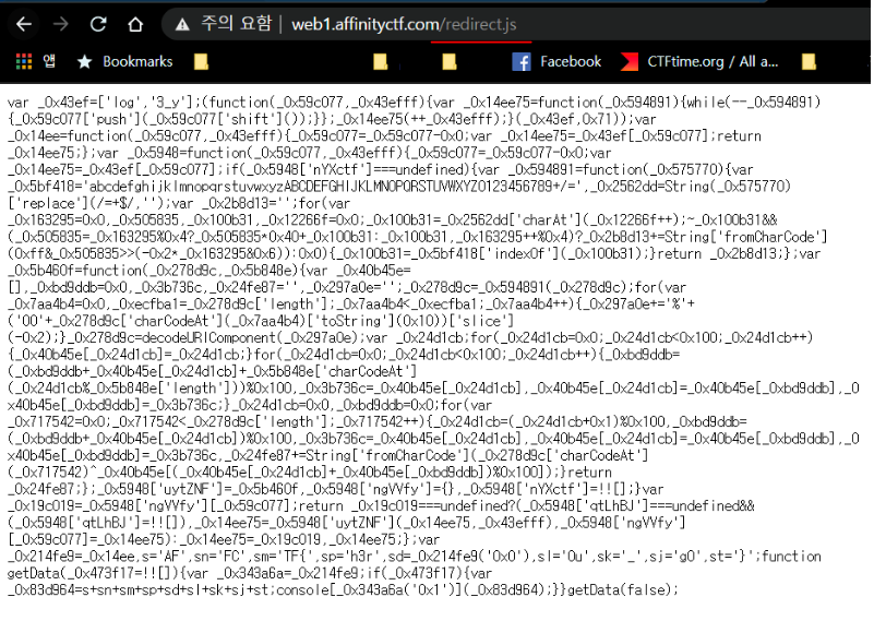 문제페이지 주소인 web1.affinityctf.com 페이지로 이동해보면