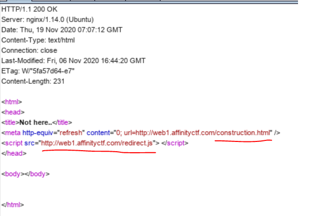 응답패킷을 보니 /construction.html 로 자동으로 튕기게끔 설정되어 있고,