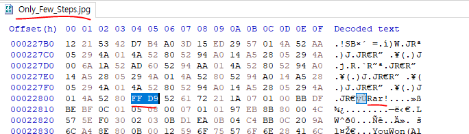 마찬가지로 JPG 파일은 FF D9 로 끝이 난다.