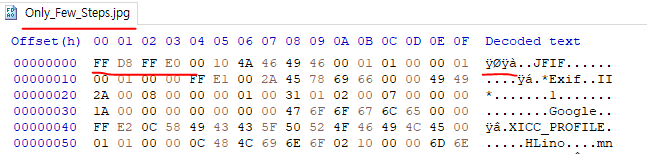 FF D8 FF E0 로 시작하는것은 JPG 파일의 특징이다.