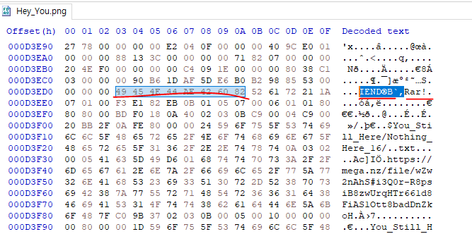PNG 파일 뒤에 RAR 압축파일이 숨어있었던 것이다.
