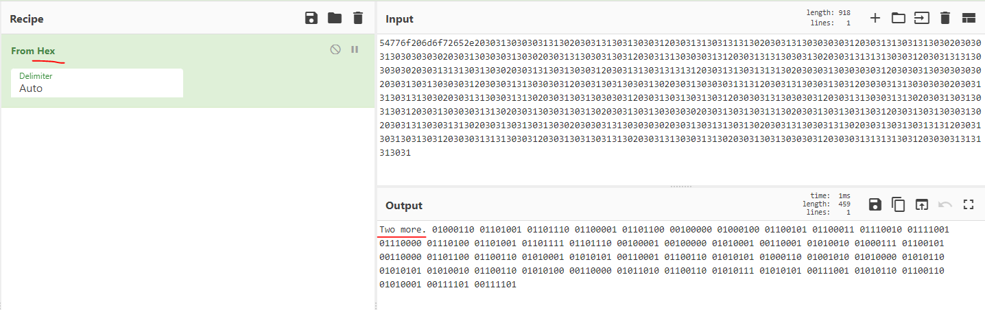 다시한번 CyberChef에서 From Hex로 디코딩 해주면