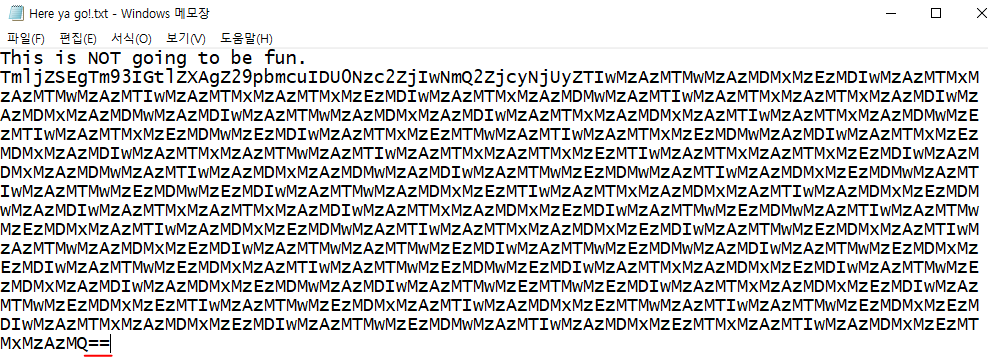 문제에서 주어지는 것은 Here ya go!.txt 파일이다.