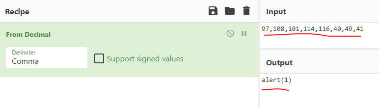 참고로 97,108,101,114,116,40,49,41 는 alert(1) 을 의미한다.