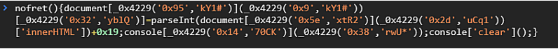 해석하자면 "버튼이 클릭될때마다 nofret() 이라는 함수를 실행해라" 정도가 된다.
