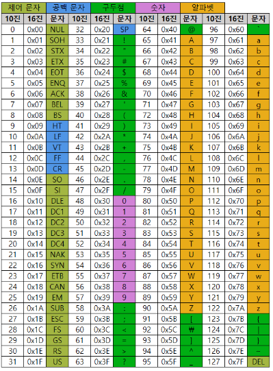 ASCII 코드표를 참고했다.