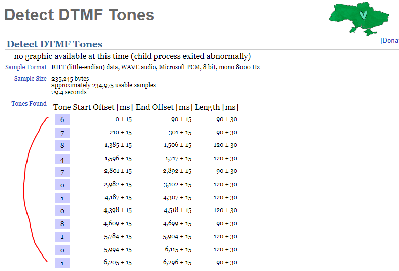 Sound File을 업로드 하면 주파수를 분석해 어떤 버튼이 눌렸는지 알아내주는 사이트이다.