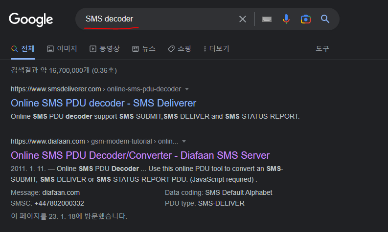 확실히 SMS PDU Decode 를 하면 문제를 풀 수 있는듯 했다.