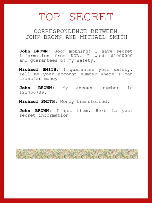 내용은 John BROWN과 Michael SMITH 가 무언가를 거래하는 내용인데