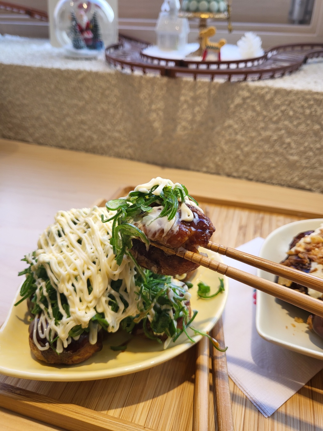 이것 아삭아삭한 파가 부드러운 타코야끼에 청량한 맛도 더해줘서 입맛에 좀더 맞았다.