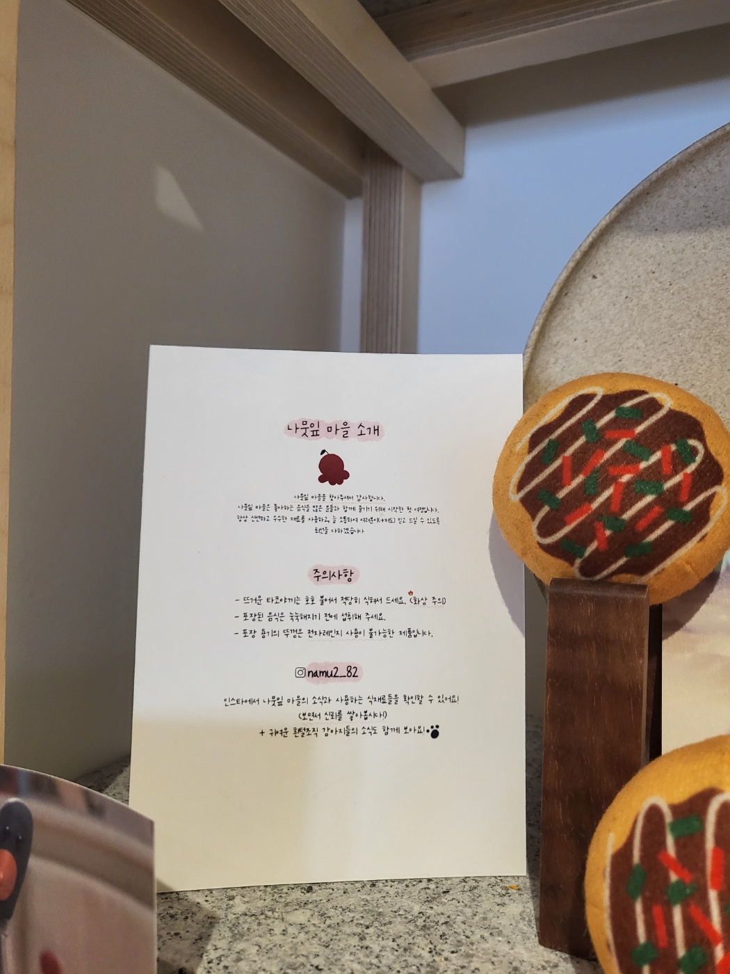 사장님이 어떤 재료를 쓰는지 엽서 같은 안내문에 귀여운 그림들과 작성되어있다.