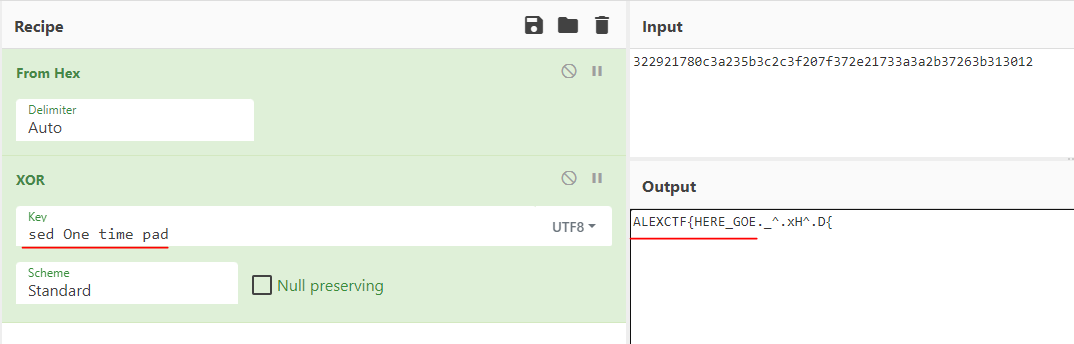 해당 암호문을 ALEXCTF{HERE_GOES_THE_ 로 XOR 하면
