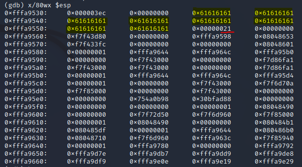 스택에서 같은 값을 찾으면 0x61 이 시작하는 지점부터