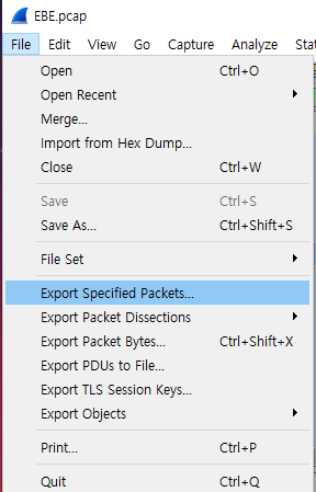 File - Export Specified Packets 메뉴를 선택해