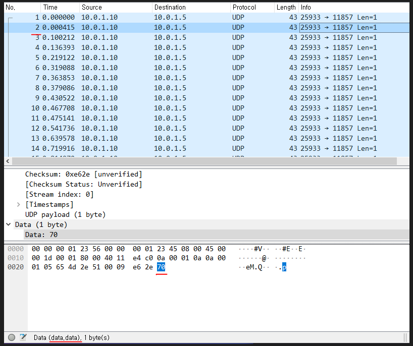 친구에게 UDP 를 이용해 플래그를 한글자씩 보내고 있었는데