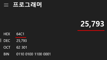 저렇게 걸어준 이유는 64C1 이 10진수로 25,793이기 때문이다.