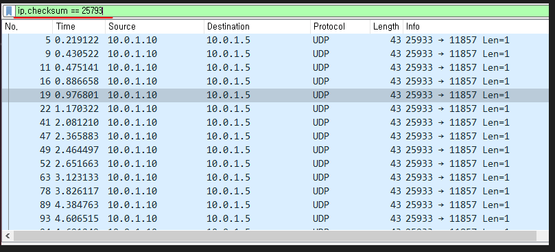 ip.checksum == 25793 라고 필터를 걸어주었다.