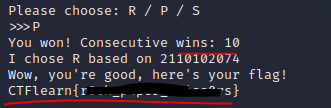 그렇게 해서 10번 이기면 플래그를 볼 수 있다.