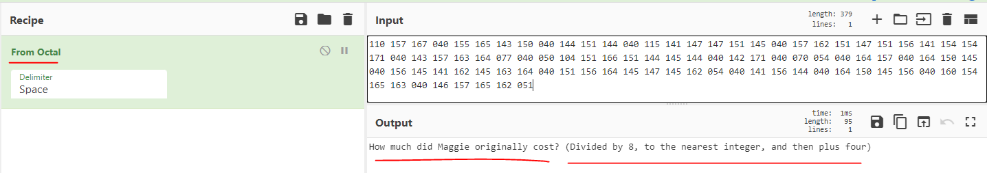 key = chr(SolutionToDis(110 157 167 040 155 165 143 150 040 144 151 144 040 115 141 147 147 151 145 040 157 162 151 147 151 156 141 154 154 171 040 143 157 163 164 077 040 050 104 151 166 151 144 145 144 040 142 171 040 070 054 040 164 157 040 164 150 145 040 156 145 141 162 145 163 164 040 151 156 164 145 147 145 162 054 040 141 156 144 040 164 150 145 156 040 160 154 165 163 040 146 157 165 162 051))