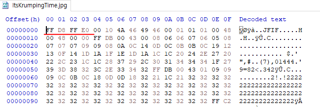 FF D8 FF E0 로 시작하는것은 JPG 파일의 특징이다.