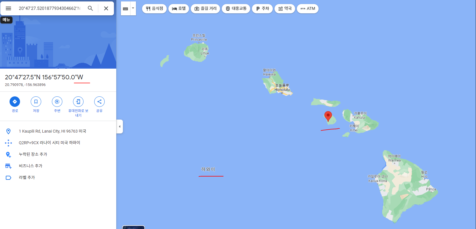 이번엔 하와이 제도의 한 섬이 잡혔다.