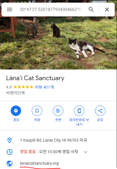 해당 주소인 lanaicastsanctuary.org 가 문제의 정답이었다.