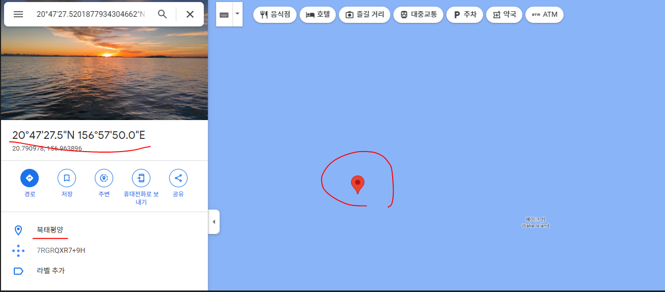 그런데 이상하게 사진에 있던 경위도를 그대로 써서 검색했더니