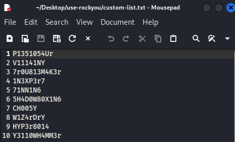 rockyou 는 무차별 대입을 하기위한 사전파일이다.