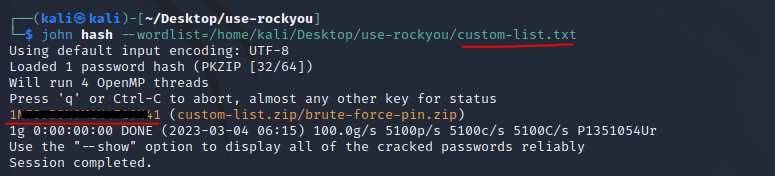 john --wordlist=<custom-list.txt 파일 경로> hash 명령어로 비밀번호를 crack 해주면 된다.