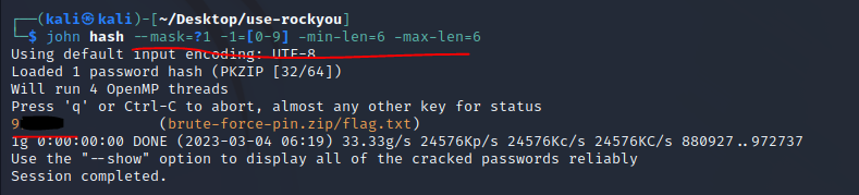 john hash --mask=?1 -1=[0-9] -min-len=6 -max-len=6 형태로 입력해주면 된다.