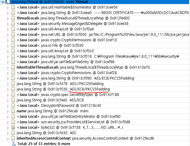 뭔가 암호화에 사용되었을것 같은 정보들이 보인다.