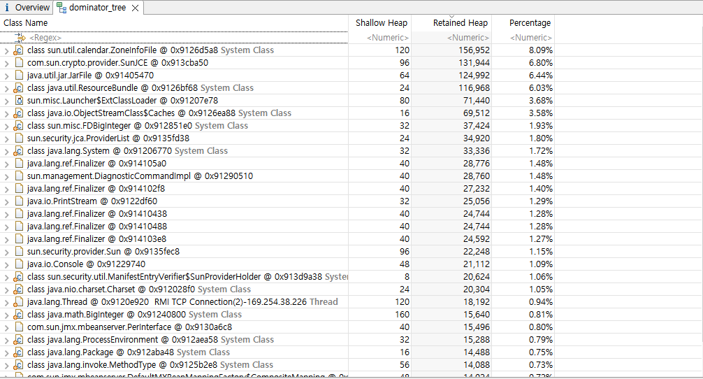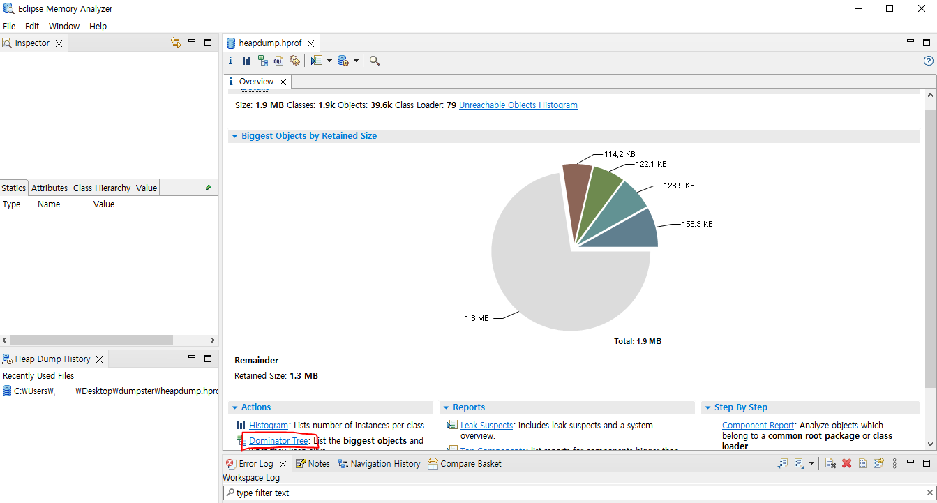 화면 아래쪽에 있는 Dominator Tree 버튼을 눌러준다.