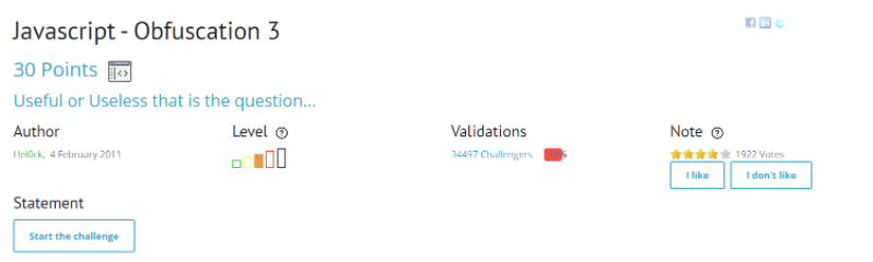 | [Root Me] Javascript - Obfuscation 2 - 웹해킹 / 자바스크립트 (44) | 2022.03.13 |
