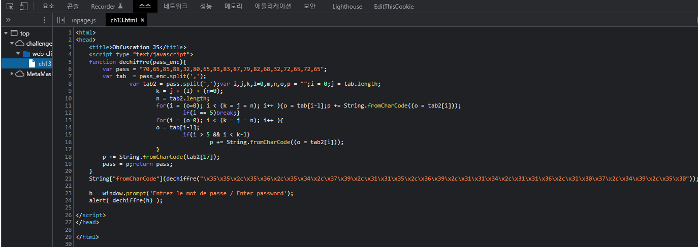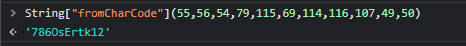 개발자도구의 콘솔창에서 아까 이용했던 String["fromCharCode"] 함수를 이용해서