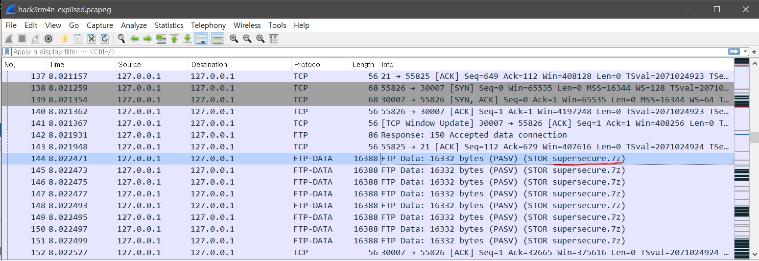 supersecure.7z 파일을 전송하고 있는것이 보인다.