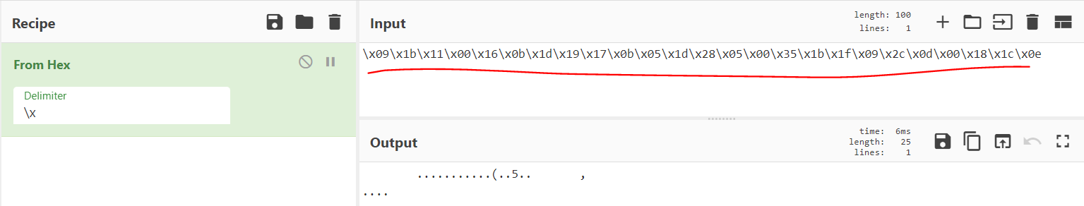 CyberChef(https://gchq.github.io/CyberChe) 에서 우선 주어진 암호문을 From Hex 로 바꿔보았다.