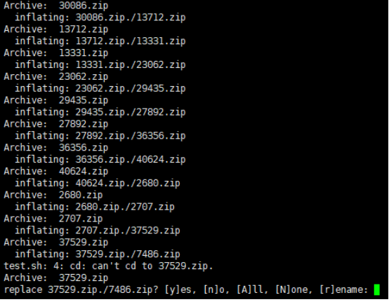 while true; do cd $(ls *.zip).; done 명령을 이용해서 마지막 폴더로 순간이동한다.