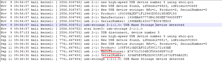 해당 USB의 Product, Manufacturer, SerialNumber 를 로그로 남기는듯 하다.