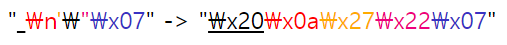 즉 argument로 " \n'\"\x07" 라는 값을 입력해야 하는데 그냥 키보드 문자 그대로 치면 안된다.