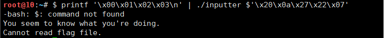 ./inputter $'\x20\x0a\x27\x22\x07' 과 같이 argument를 같이 넣어서 실행시켜주면