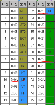 그다음 \n 은 코드표에서 LF라고 적혀있는데