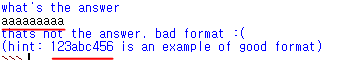 what's the answer 라는 문구가 나오며 사용자 입력을 받는다.