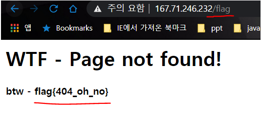 /flag 경로가 실제로 존재하지 않으니 당연히 404 에러가 날 것이다.
