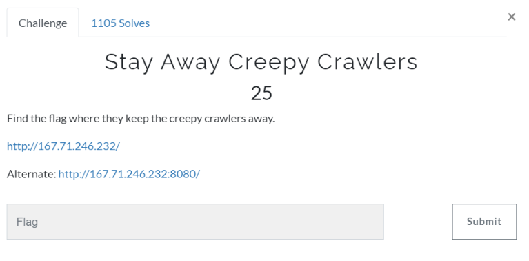 Find the flag where they keep the creepy crawlers away 라고 적혀있다.