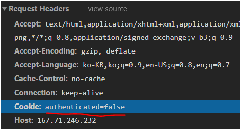 Cookie 값이 authenticated=false 라고 되어있는것을 발견했다.