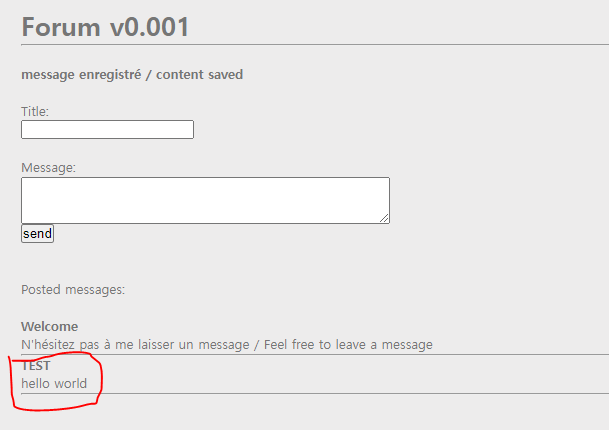 TEST / hello world 라고 한번 입력해봤다.