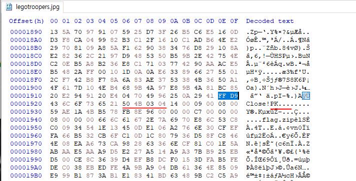 파일에서 FF D9 값이 나오면, 그 뒤에는 아무런 값이 없어야 정상이다.